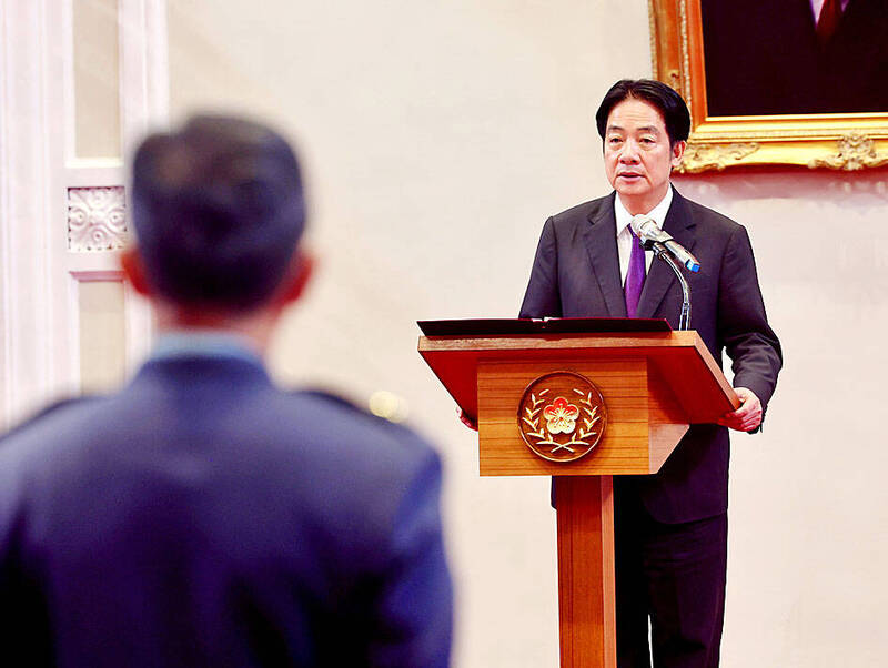 During the ceremony, Lai recognized four military officers who were promoted to the rank of major general for their exemplary service. Liang Ting-wei received commendation for his leadership in relief and recovery operations in Hualien County following Typhoon Ragasa last month. Lee Chen-hua, an air force officer, earned his promotion for his significant contributions in redesigning and deploying air routes.